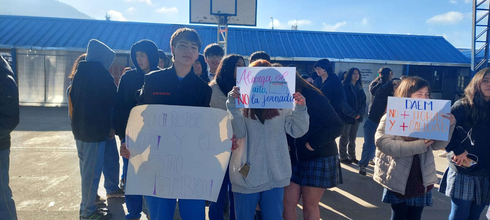 Orbitanoticias logró contactar a una dirigente estudiantil, quien nos explicó que “esta mañana nos movilizamos. Primero lo hicimos desde el séptimo año al cuarto medio, los que salieron de sus salas en modo de manifestación porque se le está pidiendo a los docentes que por los días de paro que tuvieron hace meses, devuelvan esas horas, ya que se le hizo el descuento de días en su sueldo y los docentes y asistentes quieren la devolución de eso. Lo que nos dijeron es que para lograr la devolución, el alcalde pidió que se extendiera la jornada para recuperar estas horas y devolver dinero. Pero nosotros, los alumnos no queremos que se extienda el horario, porque estaríamos saliendo todos los días en horarios que no son cómodos y extensos, hasta el mismo día viernes saldríamos tarde”.