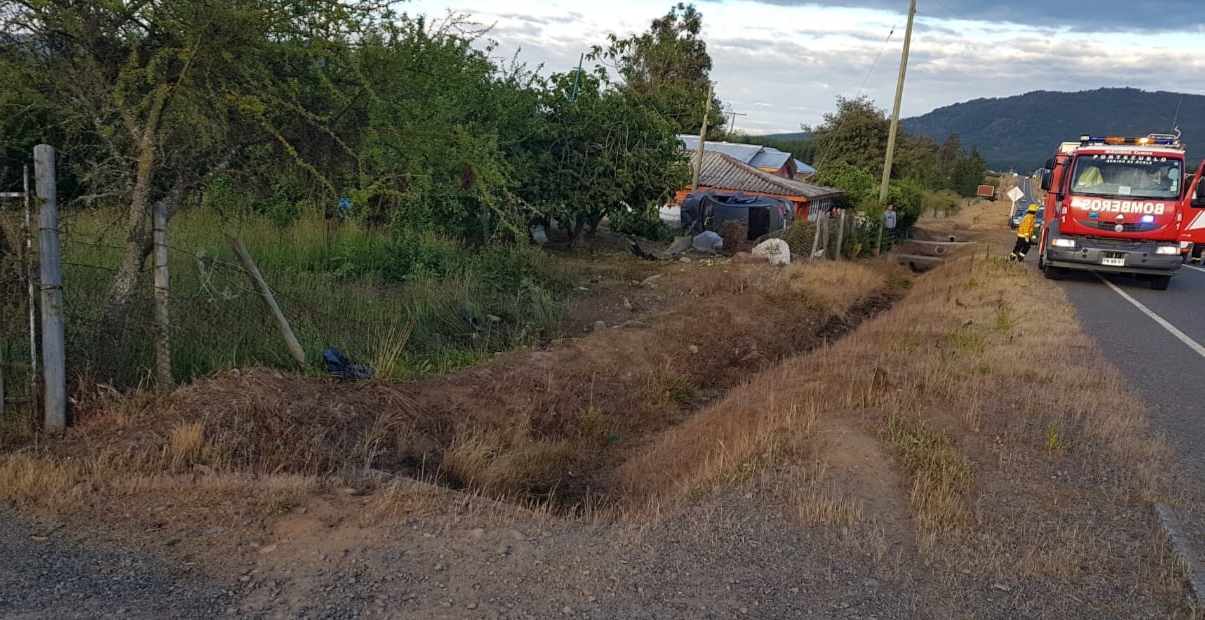 En ese lugar, y por causas que se investigan, un automóvil se salió del camino y volcó a un costado de la ruta, resultando uno de sus ocupantes herido.