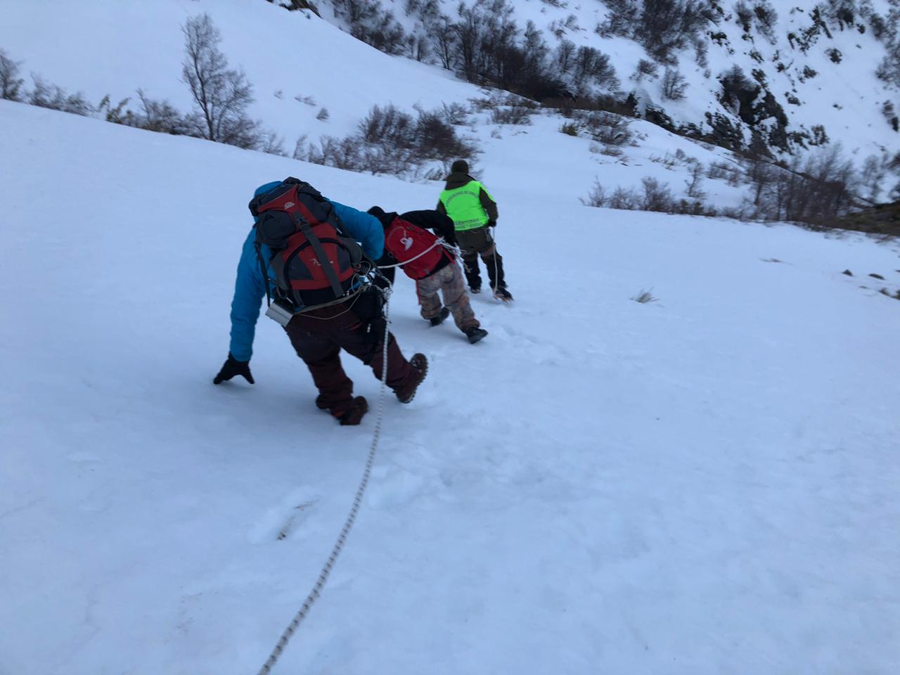 Los jóvenes, de 28 y 35 años, manifestaron su condición cerca de las 13.00 horas, razón por la cual se inició de inmediato el procedimiento de rescate a cargo del equipo especialista de montaña y frontera de Carabineros.