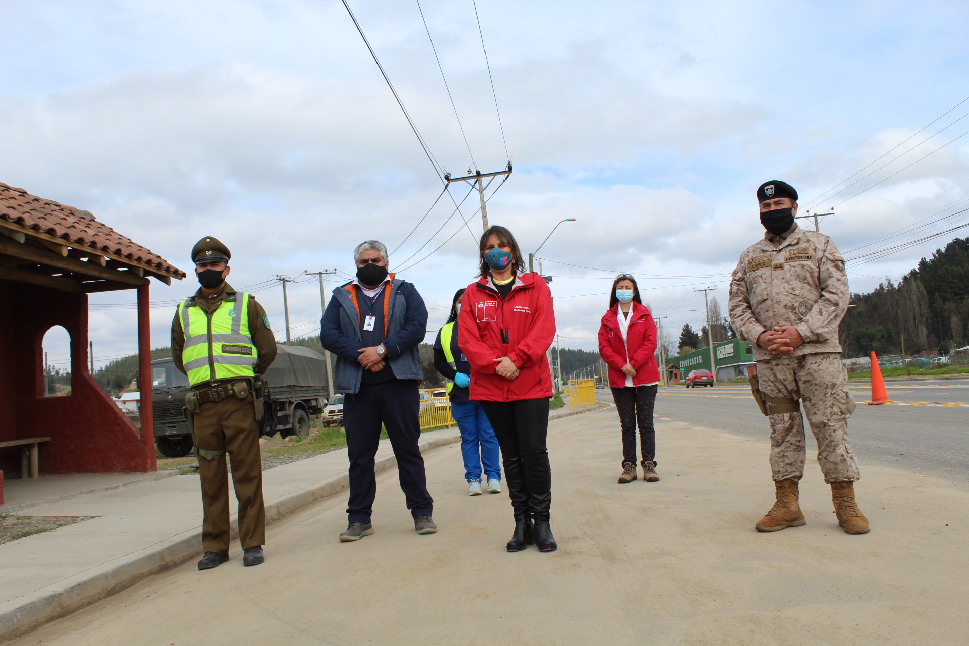 - La Gobernadora Rossana Yáñez, junto a la Seremi de Salud, Ejército, Carabineros y personal militar, dieron el vamos a control preventivo de salud en acceso sur a la comuna.