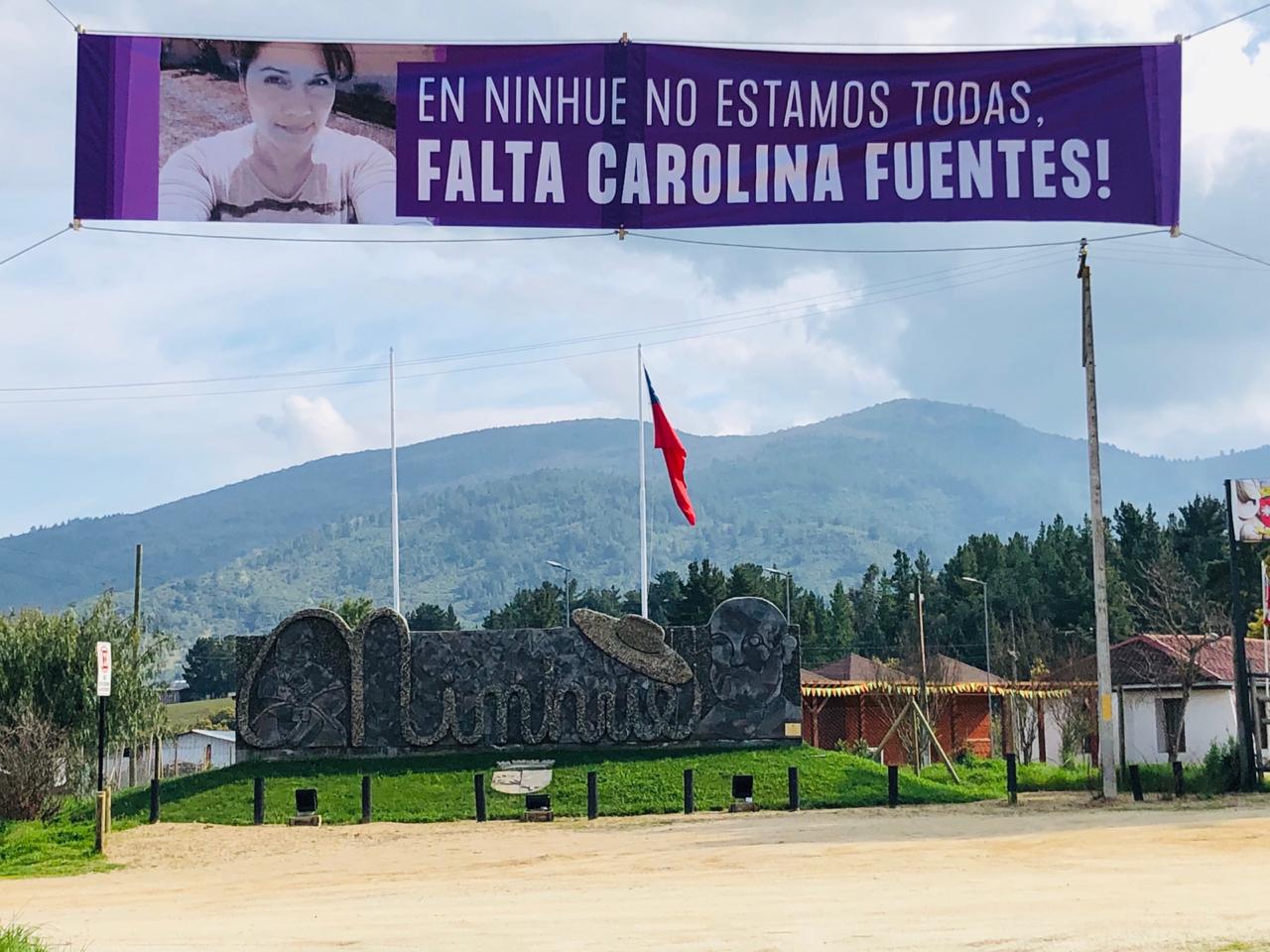 La comunidad de Ninhue sigue pendiente del caso, y algunos de ellos se han unido para confeccionar lienzos que han sido instalados en el acceso al poblado de Ninhue, justo donde se ubica el portal que identifica a la comuna y donde se lee «En Ninhue no estamos todas…falta Carolina Fuentes».