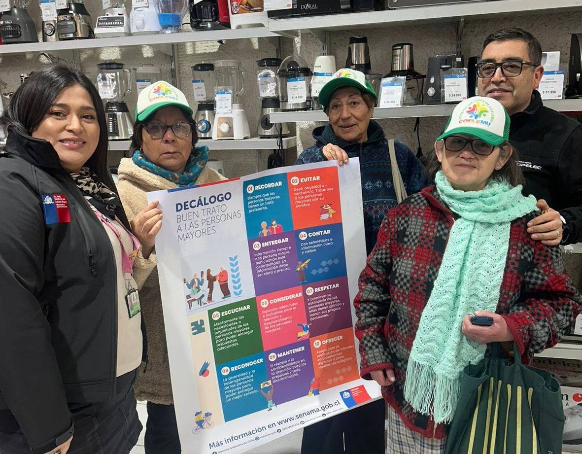 En el marco de la conmemoración del Mes del Buen Trato hacia las Personas Mayores, los usuarios y usuarias del Centro Diurno Comunitario realizaron un significativo recorrido por diversos estamentos públicos de la comuna de Coelemu, llevando consigo el Decálogo del Buen Trato hacia las Personas Mayores.