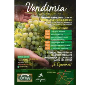 En el sector Los Remates, ubicado a 15 kilómetros de Quirihue en el camino a Cauquenes se realizará éste sábado 14 de abril la primera fiesta demostrativa de la vendimia tradicional.